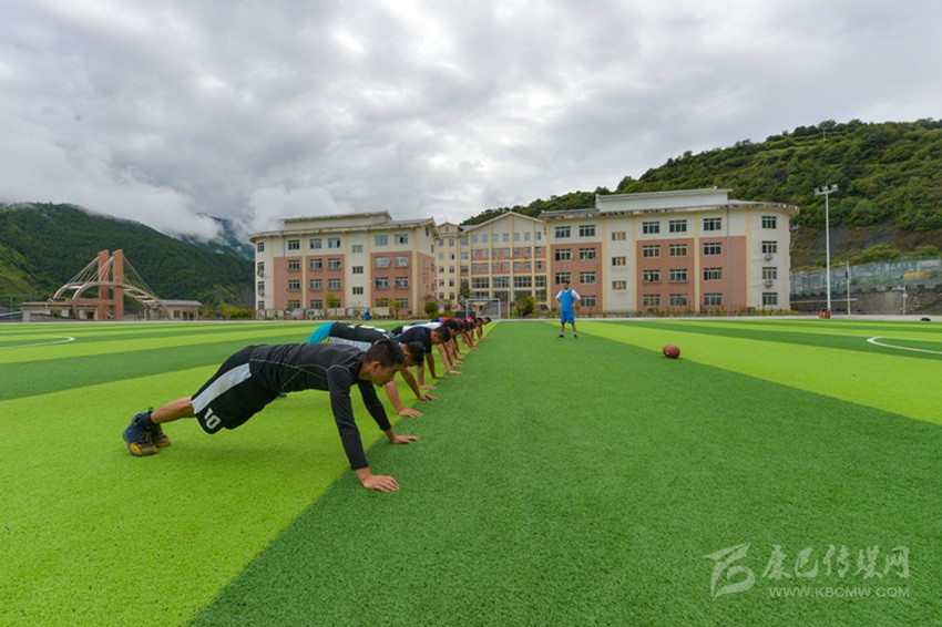 當(dāng)筆者來到呷爾片區(qū)寄宿制學(xué)校的綠茵場上時,男子籃球隊員正在進行俯臥撐、跑步、傳球等體能訓(xùn)練?!拔覀冴犜?jīng)取得過輝煌的成績,是一支有奪冠實力的隊伍,所以在訓(xùn)練上不能放松,爭取再續(xù)輝煌!”該隊教練如是說。成人組與青少年組運動員們正在環(huán)行跑道上進行馬拉松式訓(xùn)練。隨著教練一聲哨響,身體矯健的健兒們?nèi)缑擁\野馬向前飛奔。其中年齡僅10歲來自小金彝族鄉(xiāng)的李銀國格外引人注目,他是整個隊伍最年輕的選手,但是在訓(xùn)練中老成持重,訓(xùn)練有板有眼,一點兒也不遜老大哥們。