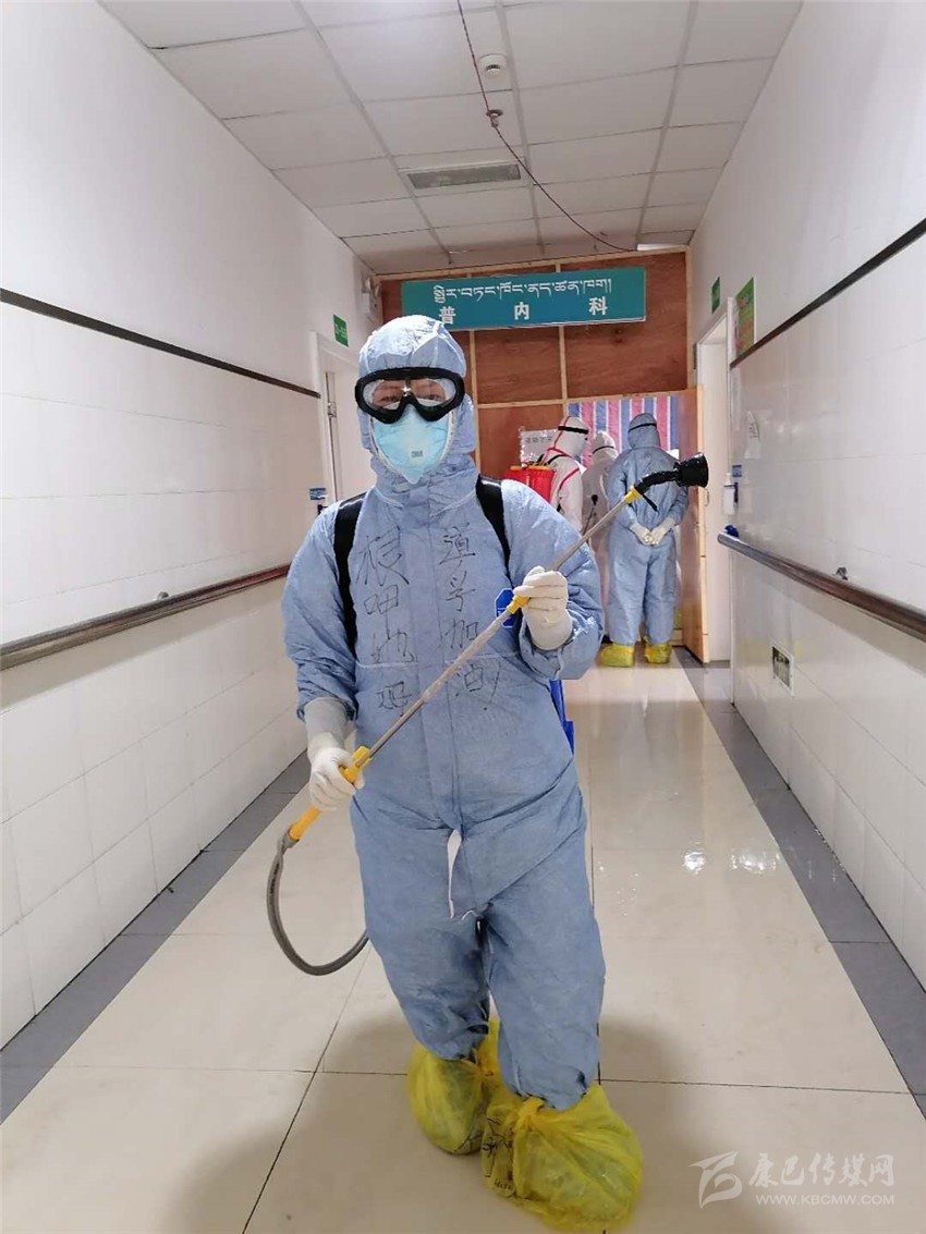 除了日常護理,根呷她姆的還要負責每日病房的消毒工作、垃圾清理以及清潔衛(wèi)生工作?!跋竟ぷ鞲裢庵匾?,必須做到不漏一個死角?!备人窂娙讨?4消毒液刺激引起的嗆咳及生活垃圾引起的惡心發(fā)嘔,一絲不茍,任勞任怨,做好每一天的消殺清潔工作,讓病毒無處遁形。在同事面前她是護士長、家長,在病人面前,她是護士、護工、清潔工、家屬、心理老師……根呷她姆每天在各種角色間轉(zhuǎn)換自如,不怕臟、不怕累、不怕苦,拼盡全力只為打贏這場沒用硝煙的戰(zhàn)爭!