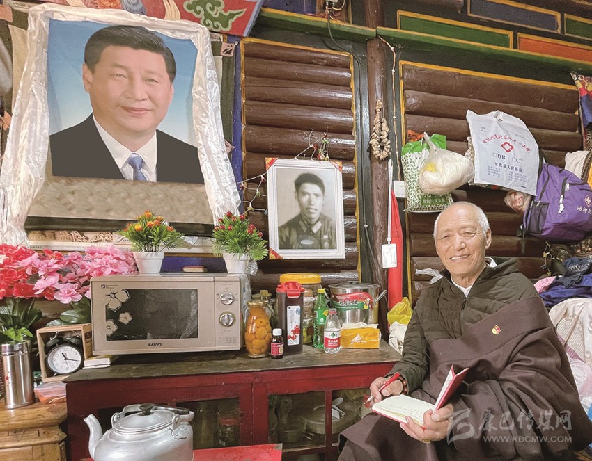 “這本上世紀(jì)60年代印的藏文版毛主席語(yǔ)錄,我不知道翻了多少遍,都快要翻爛了?!比A發(fā)蒼顏,中氣十足的多加對(duì)記者笑言:“我從小是‘娃子’,根本認(rèn)不到字,不管是藏漢文;但我現(xiàn)在能流利地讀寫藏文,全是藏民團(tuán)里會(huì)藏文的漢族戰(zhàn)友教的;更有意思的是,我的漢話是藏民團(tuán)里會(huì)說(shuō)四川話的藏族戰(zhàn)友教的!”