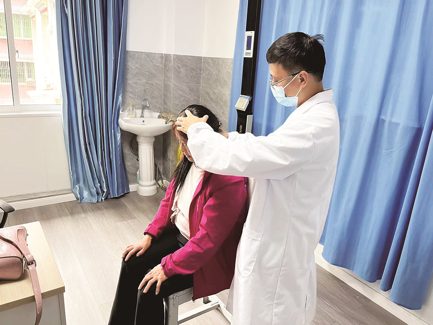 徐英俊通過檢查發(fā)現(xiàn)夫妻倆都患有較嚴(yán)重的退化性膝關(guān)節(jié)炎、關(guān)節(jié)腔積液、內(nèi)外側(cè)韌帶受損等疾病。經(jīng)過慎重考慮,徐英俊決定為其進行中西醫(yī)結(jié)合治療,并為他們制定了一套詳細(xì)全面的治療方案。超聲引導(dǎo)下關(guān)節(jié)穿刺、超聲引導(dǎo)下隱神經(jīng)阻滯、頰針療法、針刺療法……徐英俊因地制宜開展了多項新技術(shù)、新項目,效果立竿見影。