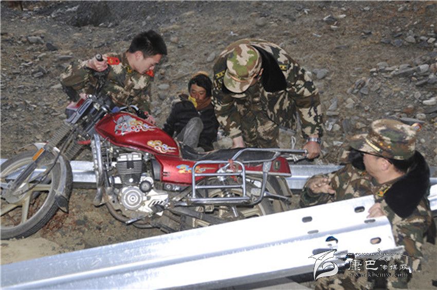 11月29日,甘孜州消防官兵在抗震救災(zāi)途中,發(fā)現(xiàn)一名騎摩托車(chē)的青年摔倒在5米高的路基下,右腿被死死被壓住不能動(dòng)彈。據(jù)了解,消防官兵結(jié)束道孚縣中古村安置點(diǎn)消防安全檢查,準(zhǔn)備返回祖慶學(xué)校安置點(diǎn),行駛至塔公鄉(xiāng)海拔4000米左右處,發(fā)現(xiàn)事發(fā)摩托車(chē)就在消防官兵所乘車(chē)輛前10米處。駕駛?cè)藛T是一名藏族青年,在他發(fā)動(dòng)摩托車(chē)時(shí),轉(zhuǎn)眼就摔倒掉下公路路基。