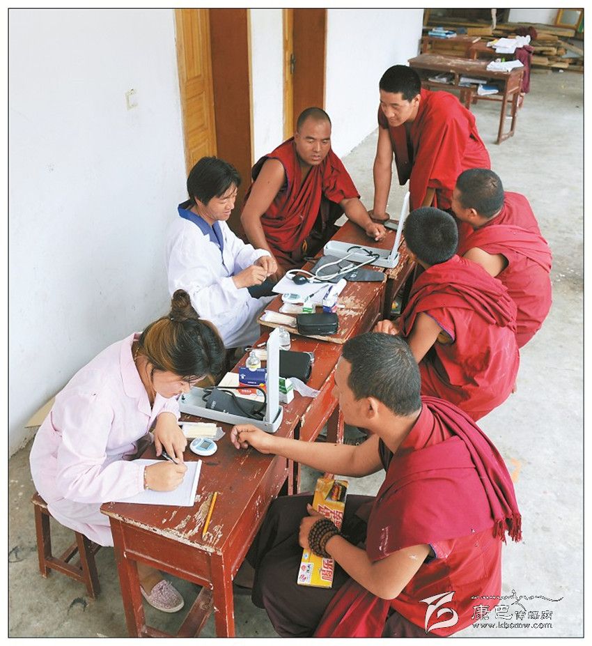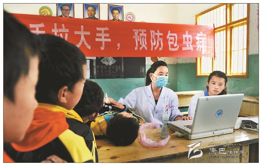 高原防控——醫(yī)務(wù)人員在預(yù)防包蟲病現(xiàn)場為學(xué)生檢查身體。