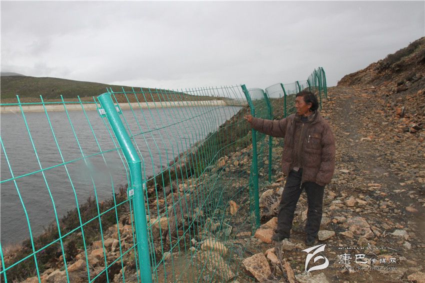 52歲的降央生根穿上厚厚的棉衣,腿有殘疾行動(dòng)不便的他爬上多曲河水庫壩頂,用簡易的工具調(diào)節(jié)一下水量,然后開始他每周一次對水庫四周的巡查工作,看有沒有被風(fēng)吹落的石頭砸破網(wǎng)圍欄、牦牛滾落水庫污染水源……