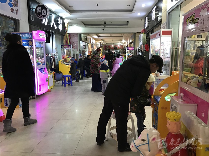 整個(gè)情歌廣場地下商城巷道內(nèi)擺滿了各式游戲機(jī)、搖搖車。