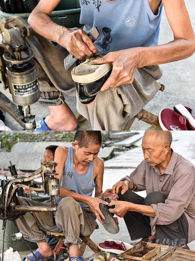 “三娃,今天來得早嘛!”尚未坐定,便有鄉(xiāng)鄰拿著鞋子走過來,“鞋跟脫膠了,修一哈?!?/span>