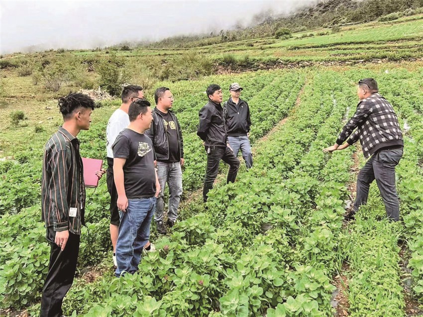 瀘定縣得妥鎮(zhèn)中心小學(xué)校學(xué)生正在田間拔草。