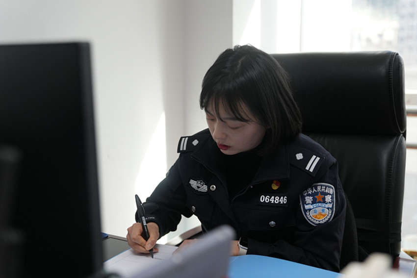 邱壘自進(jìn)入公安機(jī)關(guān)工作以來,以“零”為起點(diǎn),從一般民警到面面俱到的辦公室主任。這條追光路上,她如陀螺一般未曾停歇,逐漸褪去青澀,沉淀成熟,一步一個(gè)腳印,努力實(shí)現(xiàn)她當(dāng)初的“入警夢”。