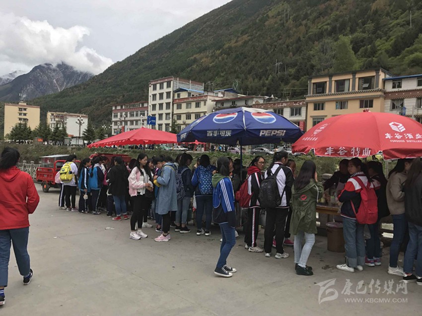 那么真實(shí)情況到底如何呢?7日,記者專門來(lái)到康定中學(xué)走訪調(diào)查。記者搭乘出租車前往學(xué)校,途中司機(jī)卻回應(yīng)“康中校門口那一段全是賣炸洋芋、炸雞腿的攤攤,車子根本開(kāi)不過(guò)去,只能提前下車?!碑?dāng)記者步行過(guò)橋到達(dá)校門口路段時(shí),雜亂無(wú)序而又異常喧鬧的場(chǎng)面立刻映入眼簾。約摸十來(lái)家燒烤油炸“流動(dòng)攤點(diǎn)”上,商販們手中的烤具上下翻飛,幾十名身著“康定中學(xué)”校服的學(xué)生駐足其間,從校門出入的車輛不斷鳴笛避讓。烤面筋、炸土豆、烤雞腿,濃濃的油煙、各種調(diào)料混合的氣味、滋滋的油炸聲……儼然一副“美食街”的火爆景象。