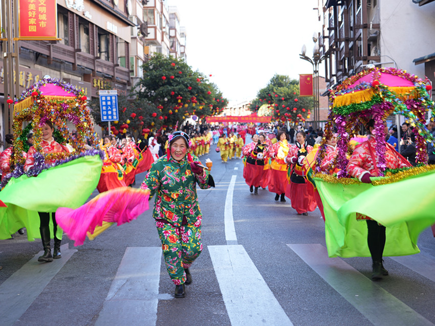隨著悠揚(yáng)的弦胡聲響起,備受期待的“千人弦子鍋莊”震撼上演。來(lái)自夏邛鎮(zhèn)、地巫鎮(zhèn)、竹巴龍鄉(xiāng)等多個(gè)鄉(xiāng)鎮(zhèn)的群眾演員們輪番上場(chǎng),他們身著巴塘傳統(tǒng)民族服飾,踩著節(jié)拍不斷律動(dòng),含胸、顫膝、點(diǎn)踢、三步一撩,一步一靠,婀娜輕盈如行云流水;半圓、橢圓、長(zhǎng)圓與肢體撩動(dòng)飛舞,一個(gè)個(gè)深情的圓意蘊(yùn)廣遠(yuǎn),體現(xiàn)著天人合一的動(dòng)態(tài)美。不少游客群眾被吸引加入其中,一圈圈、一層層,大家縱情歌舞、歡騰跳躍,沉浸在非遺盛況中。在觀看演出后,來(lái)自河南的游客劉女士?jī)?nèi)心十分雀躍:“我今天專門過來(lái)看表演,現(xiàn)場(chǎng)非常熱鬧,每一個(gè)節(jié)目都非常精彩,極具民族特色和觀賞性,讓我大飽眼福。民族的就是世界的,我們國(guó)家有這么多優(yōu)秀燦爛的民族文化,這是我們的驕傲,要更好地傳承和發(fā)揚(yáng)好。今天的活動(dòng)非常有意義,所有參演人員十分投入、熱情滿滿,從載歌載舞中看到了巴塘群眾對(duì)幸福生活的表達(dá),感受到了巴塘濃濃的年味?!币磺右磺?,現(xiàn)場(chǎng)歌舞如潮,歡呼聲叫好聲此起彼伏,匯成一片歡樂的海洋。此次弦子鍋莊展演在保持傳統(tǒng)弦子鍋莊舞曲風(fēng)格的基礎(chǔ)上,還創(chuàng)造性地融入了民族團(tuán)結(jié)、群眾生活等內(nèi)容,用鄉(xiāng)音唱出群眾心中的喜悅,用舞蹈跳出對(duì)美好生活的向往。在傳承保護(hù)民族文化的同時(shí),又賦予弦子鍋莊舞新時(shí)代文化內(nèi)涵,充分展現(xiàn)巴塘中國(guó)民間弦子之鄉(xiāng)深厚的歷史文化和多彩多姿的民俗風(fēng)情。